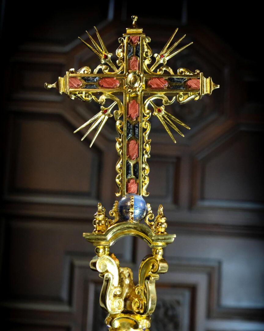 Esta pieza, realizada en pan de oro y policromada en partes imitando al mármol, que cobija en su base al perro con la antorcha, visión de santo Domingo en el sueño de su madre la beata Juana de Aza, viene a rematar y engrandecer una obra multidisciplinar que pone en valor el momento que la Hermandad de la Cena está viviendo y engrandece con ello, no sólo a esta Cofradía, sino a la ciudad en general, pues se podrá disfrutar a partir de este Domingo de Ramos por las calles de la ciudad en cada acto que la Hermandad vaya a representar.